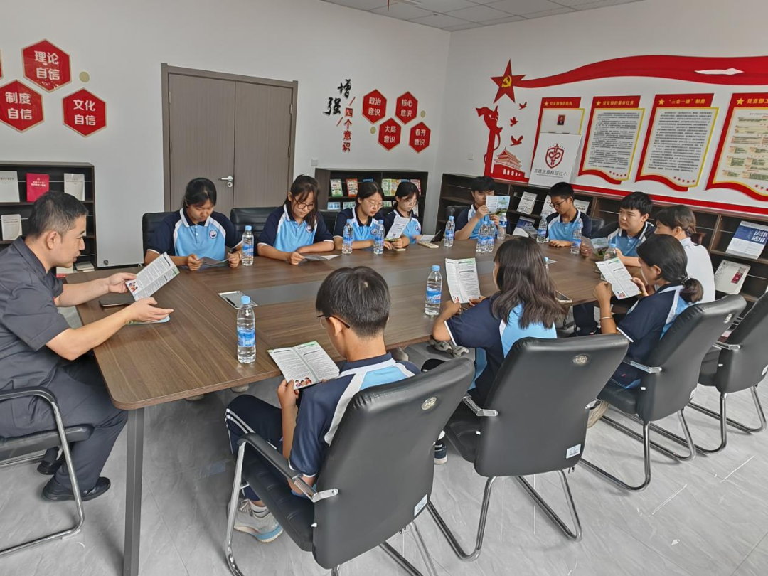 老師和學生們參觀了安檢室、信訪接待室、調解室、訴訟服務中心,負責人郭智輝介紹法庭黨建和審判融合工作開展情況,如何以“黨建紅”引領“法治藍”,以司法裁判為“盾”筑牢法律底線,老師和學生們對黨建和審判融合工作有了深入的了解。