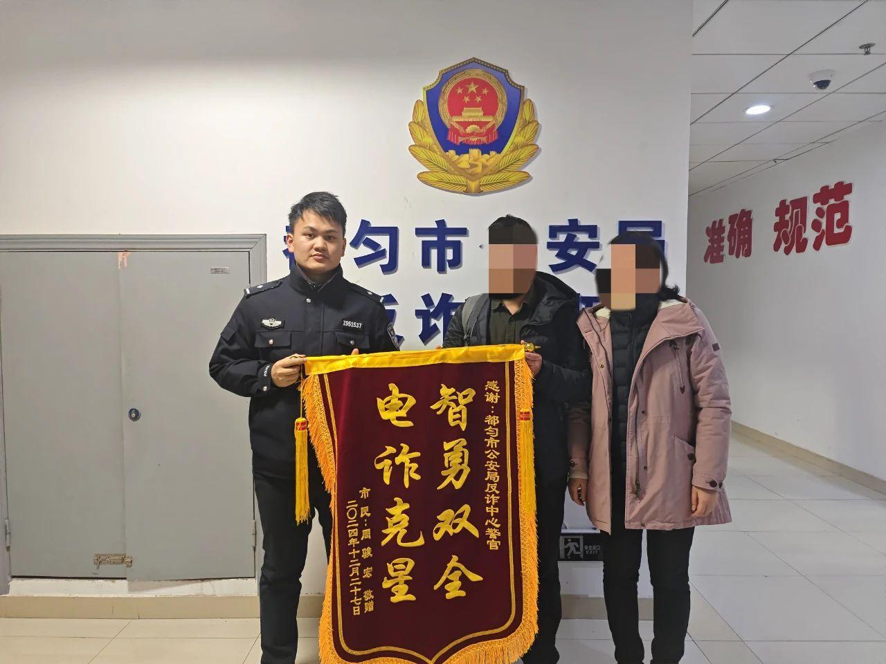 近日,貴州省黔南州都勻市公安局文峰派出所收到轄區(qū)群眾周先生送來一面“智勇雙全,電詐克星”的錦旗,感謝民警為其挽回經(jīng)濟(jì)損失。