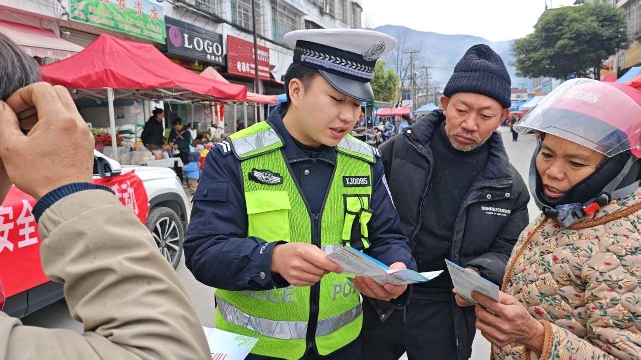 在農(nóng)村趕集日,宣傳民警來(lái)到集市中心,設(shè)置宣傳點(diǎn),擺放交通安全宣傳展板,并向群眾發(fā)放宣傳手冊(cè)。與此同時(shí),為助力群眾合法合規(guī)上路行駛,民輔警還現(xiàn)場(chǎng)詳細(xì)講解摩托車(chē)上牌辦證的規(guī)范流程,引導(dǎo)群眾主動(dòng)遵守交通法規(guī)。