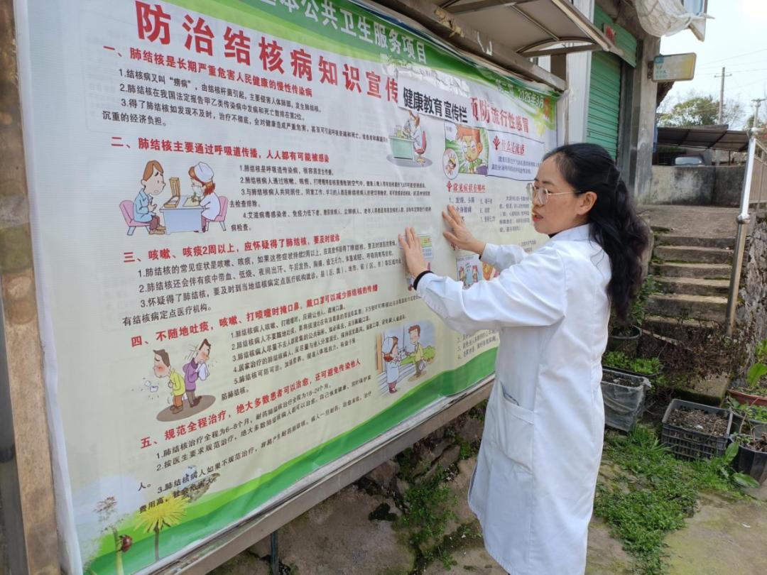 3月19日,在凱里市碧波鎮(zhèn)白秧坪村,村醫(yī)楊世霞早早地將結(jié)核病防治宣傳海報張貼出來,供村民閱覽,提高群眾防控意識。
