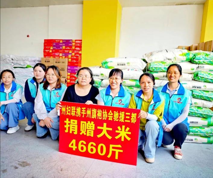 同時,充分發(fā)揮橋梁紐帶作用,聯(lián)動州旗袍協(xié)會發(fā)起愛心募捐行動。通過線上線下多渠道踴躍捐款,兩天內(nèi)籌集善款1萬余元。根據(jù)三都縣物資需求,專項采購大米送至災(zāi)區(qū),有效緩解受災(zāi)群眾的“糧袋子”難題。