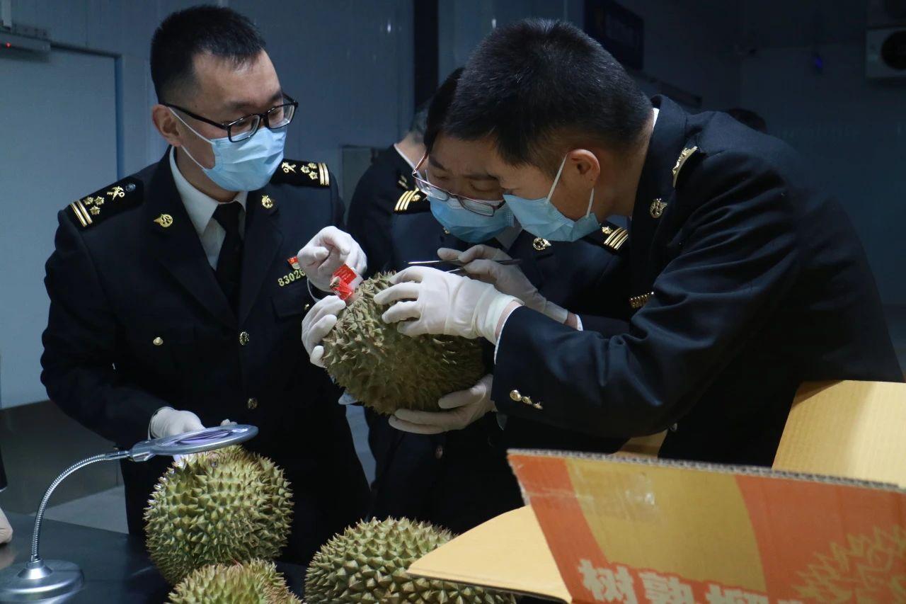 量身定制通關方案。對緬甸鰣魚、印度青蟹、孟加拉黃鱔等冰鮮水產(chǎn)品和食用水生動物實行優(yōu)先查驗,通關時間壓縮至2小時。對泰國榴蓮采取“即報即審、即到即查、即檢即出、即驗即放”機制,從運抵送檢至提離最快僅24小時,最大程度保持產(chǎn)品鮮活。為鎮(zhèn)寧蜂糖李、威寧蘋果等出境農(nóng)特產(chǎn)品量身定制通關方案,實現(xiàn)“即報即檢”,口岸停留時間壓縮至2小時內(nèi),保障“枝頭到舌尖”鮮度,助力“貴州味道”直飛東盟。