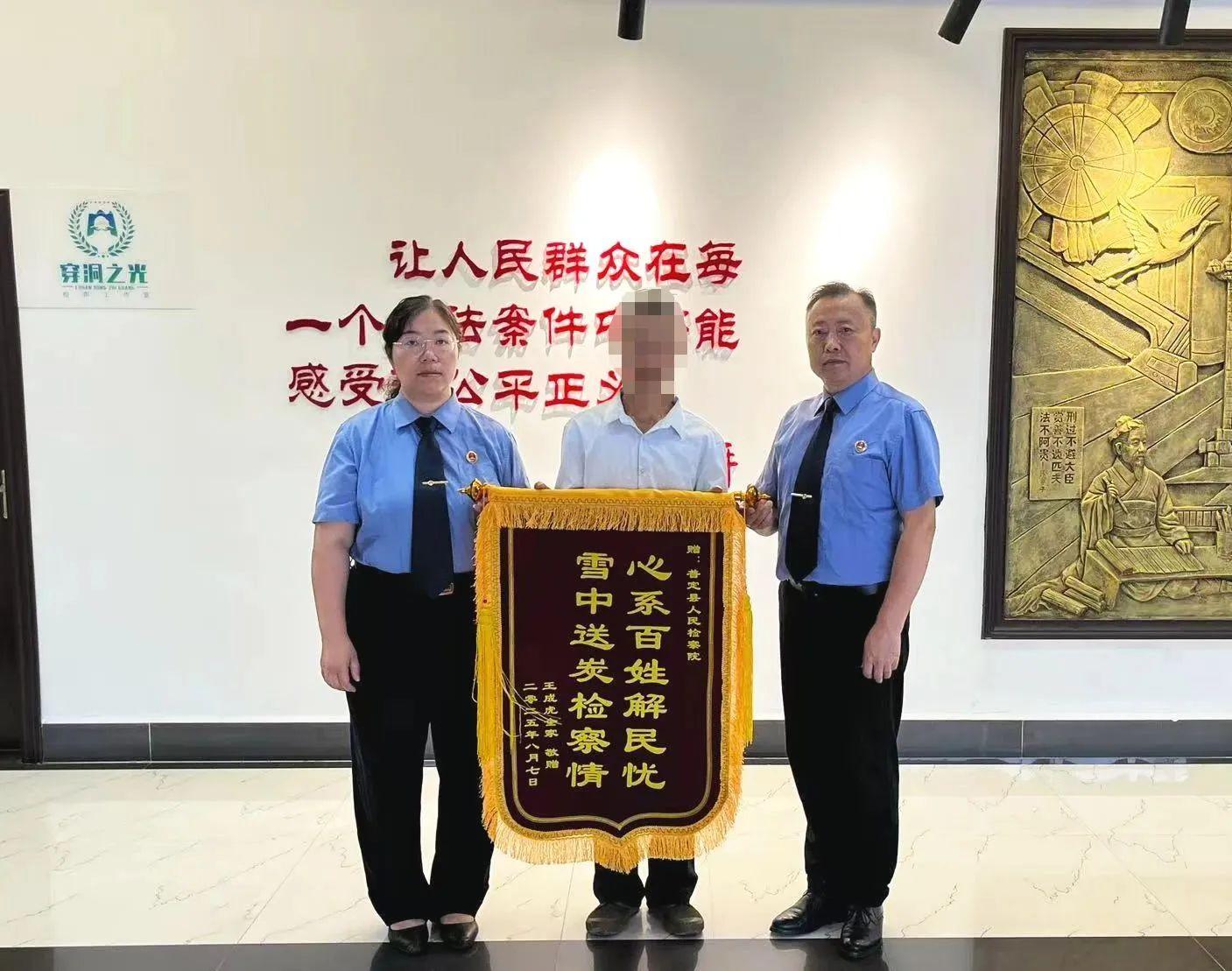 近日,貴州省安順市普定縣人民檢察院12309檢察服務中心收到一面印著“心系百姓解民憂、雪中送炭檢察情”的錦旗,贈送錦旗的王家人聲音哽咽,反復說著“謝謝檢察官”的話語。這面沉甸甸的錦旗,不僅承載著一份最真摯的謝意,更是一個曾瀕臨崩潰的被害人家庭渡過難關的無聲見證。群眾的這份由衷贊譽,便是對檢察工作最真實的回應,也是最溫暖的肯定。