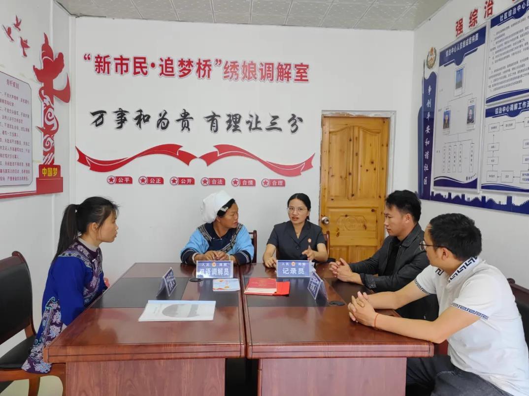 同時(shí),依托非物質(zhì)文化遺產(chǎn)資源,成立“繡娘調(diào)解室”,組建“水鄉(xiāng)巾幗調(diào)解隊(duì)”,以柔性調(diào)解化解家庭矛盾;建立苗族“三長(zhǎng)”(房長(zhǎng)、族長(zhǎng)、村長(zhǎng))與法庭聯(lián)動(dòng)機(jī)制,強(qiáng)化親情紐帶作用;融入布依族民俗文化,打造“堂屋說(shuō)事”解紛平臺(tái),讓糾紛化解更貼近群眾生活。此外,法院還創(chuàng)新運(yùn)用民族文化元素,創(chuàng)作“離婚勸和歌”“孝道傳承歌”等文藝作品,將民族文化與司法調(diào)解深度融合,累計(jì)化解家事糾紛1495件,實(shí)現(xiàn)法律效果與社會(huì)效果的有機(jī)統(tǒng)一。