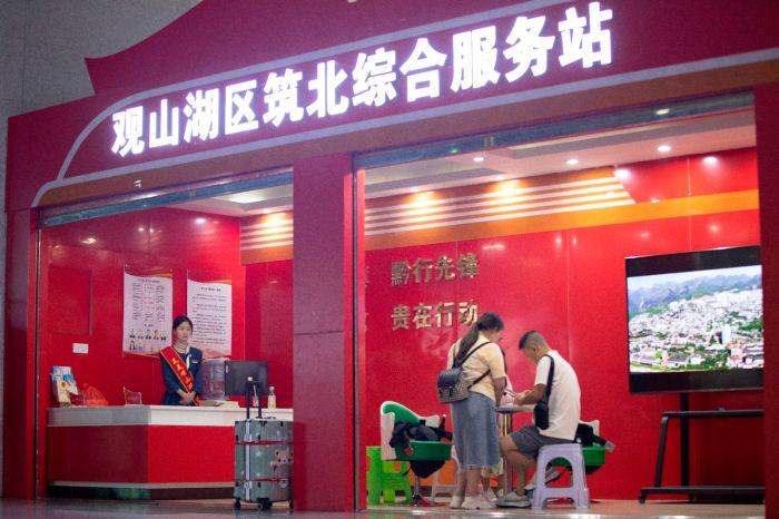 走進(jìn)貴陽北站西出口,一抹醒目的紅色標(biāo)識(shí)格外引人注目——這是觀山湖區(qū)高鐵經(jīng)濟(jì)帶服務(wù)中心于7月底牽頭打造并正式啟用的觀山湖區(qū)筑北綜合服務(wù)站?!懊赓M(fèi)充電、飲水、暫存行李,這些服務(wù)真的很貼心。”來自重慶的張先生一家在服務(wù)站休憩時(shí)感慨道,不由得連連稱贊。盡管服務(wù)站投用時(shí)間不足一個(gè)月,這座服務(wù)站已迅速成為貴陽北站服務(wù)旅客、保障秩序的“關(guān)鍵力量”。據(jù)統(tǒng)計(jì),截至目前,服務(wù)站累計(jì)服務(wù)旅客已突破5400人次。
