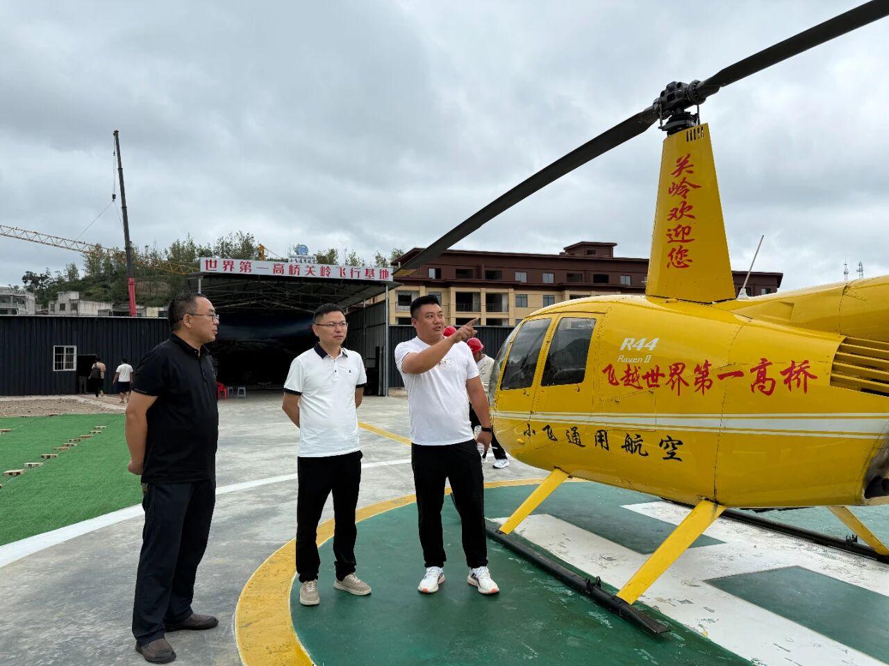 在走訪飛行基地過程中,陳治與基地負責人深入交流,詳細詢問了項目建設進度、遇到的困難以及未來規(guī)劃。據(jù)了解,目前基地已正式投入運營,游客可乘坐直升機從空中俯瞰世界第一高橋——花江峽谷大橋的雄偉身姿,領略峽谷的壯美風光,實現(xiàn)“水陸空”360度無死角觀賞。