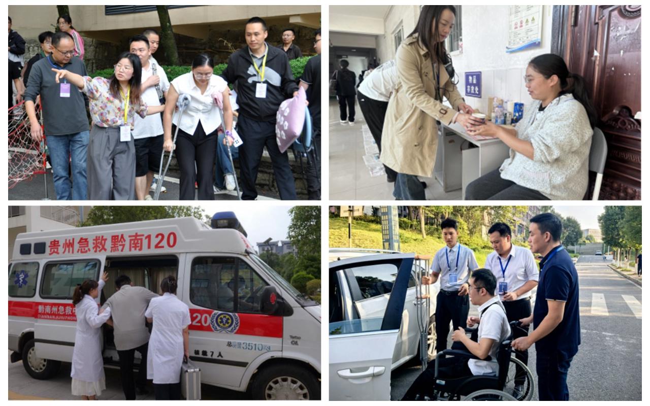 這樣的溫情時刻,在貴州各考區(qū)不斷上演。針對特殊考生的“定制化服務(wù)”,成為此次法考的鮮明亮點:遵義考區(qū)為腿腳受傷的彭某某調(diào)整“愛心考座”,開通無障礙通道,考務(wù)人員全程攙扶引導,還制作考點全景指引圖,幫考生提前規(guī)劃路線;六盤水考區(qū)對懷孕考生格外關(guān)照,用人工安檢替代金屬探測儀減少心理負擔,為6個月身孕的朱女士遞上溫熱飲用水和加厚棉坐墊,考試中不時輕聲詢問,動態(tài)關(guān)注需求;安順考區(qū)接到考生黃某因車禍行動不便的求助后,迅速為其調(diào)整靠近過道的座位,考試當天考務(wù)人員早早等候,小心翼翼攙扶她進出考場;銅仁考區(qū)則在考點大門、路口轉(zhuǎn)角設(shè)置醒目的考場示意圖,安排引導人員指引,還準備了飲用水和應(yīng)對低血糖的應(yīng)急食品,醫(yī)務(wù)人員全程駐守,為頭暈考生提供及時醫(yī)療服務(wù)。