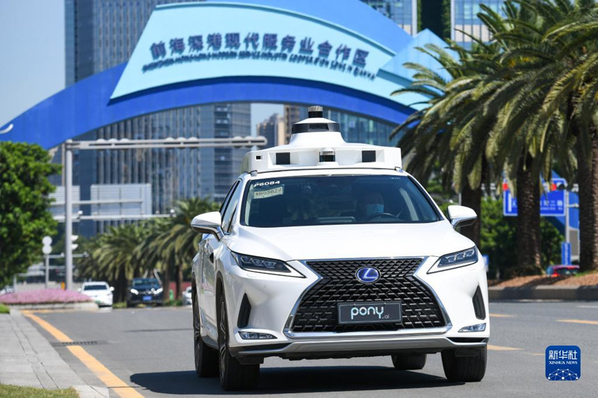 8月1日,在廣東深圳前海,小馬智行自動(dòng)駕駛汽車在道路上行駛。