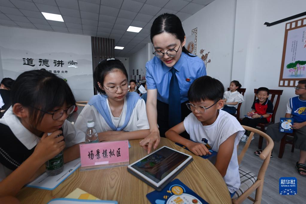 8月11日,湖州市南潯區(qū)檢察院第三檢察部副主任周思娟通過(guò)場(chǎng)景模擬游戲的形式,為黃泥兜村的孩子們普及未成年人保護(hù)知識(shí)。