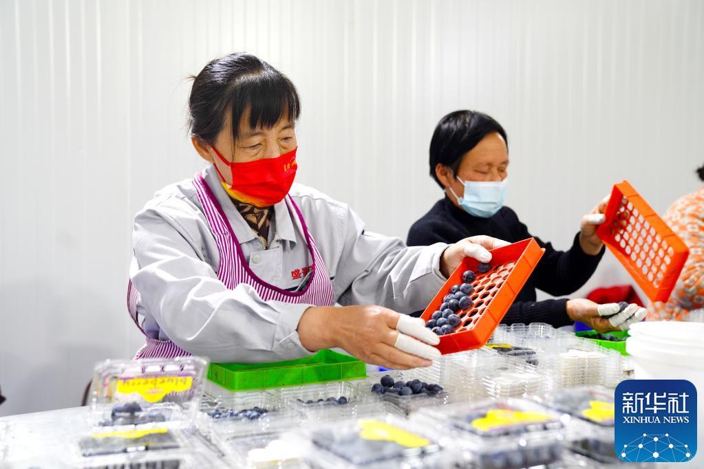 4月23日,村民在惠民縣淄角鎮(zhèn)鄉(xiāng)村振興產(chǎn)業(yè)示范基地分揀藍(lán)莓。記者 郭緒雷 攝