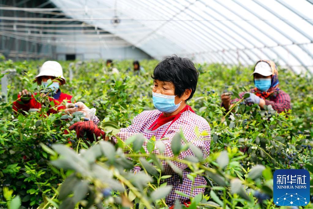 4月23日,村民在惠民縣淄角鎮(zhèn)鄉(xiāng)村振興產(chǎn)業(yè)示范基地采摘藍(lán)莓。記者 郭緒雷 攝