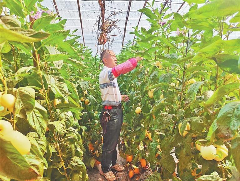 在水川鎮(zhèn)大坪村現代農業(yè)科技示范園區(qū)內,游客紛紛走進農業(yè)采摘大棚,采摘高甜爆汁的草莓和圓潤碩大的人參果。