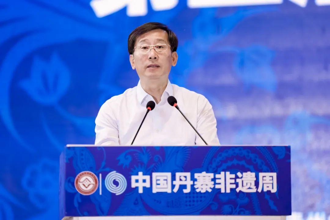 7月21日晚,第三屆中國(guó)丹寨非遺周在貴州省黔東南州丹寨縣丹寨萬達(dá)小鎮(zhèn)開幕。全國(guó)人大教科文衛(wèi)委員會(huì)主任委員、文化和旅游部原黨組書記、部長(zhǎng)雒樹剛出席。文化和旅游部副部長(zhǎng)饒權(quán)講話。中國(guó)非物質(zhì)文化遺產(chǎn)保護(hù)協(xié)會(huì)會(huì)長(zhǎng)王曉峰,貴州省人大常委會(huì)副主任、省總工會(huì)主席桑維亮,萬達(dá)集團(tuán)總裁齊界致辭。貴州省人大常委會(huì)黨組成員于杰,貴州省委宣傳部副部長(zhǎng)、省文化和旅游廳廳長(zhǎng)孫含欣,州委書記、州長(zhǎng)安九熊,州人大常委會(huì)主任湯越強(qiáng),州政協(xié)主席潘玉鳳,州領(lǐng)導(dǎo)譚海、崔鵬、龍黔清、王建華,亞洲財(cái)富論壇執(zhí)行主席、秘書長(zhǎng)韓劍鋒出席開幕式。中國(guó)非物質(zhì)文化遺產(chǎn)保護(hù)協(xié)會(huì)副會(huì)長(zhǎng)兼秘書長(zhǎng)張雅芳主持開幕式。