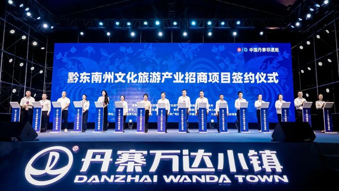 開幕式上,雒樹剛、饒權(quán)、王曉峰、桑維亮、于杰、孫含欣、安九熊、齊界、龍濱共同啟動(dòng)“第三屆中國(guó)丹寨非遺周”。會(huì)上還舉行了黔東南州文化旅游產(chǎn)業(yè)招商項(xiàng)目簽約儀式,共簽約文化旅游招商項(xiàng)目16個(gè),協(xié)議總投資25.975億元。隨后,與會(huì)領(lǐng)導(dǎo)和嘉賓還欣賞了黔東南非遺項(xiàng)目展演,并參觀了各非遺巡展點(diǎn)。