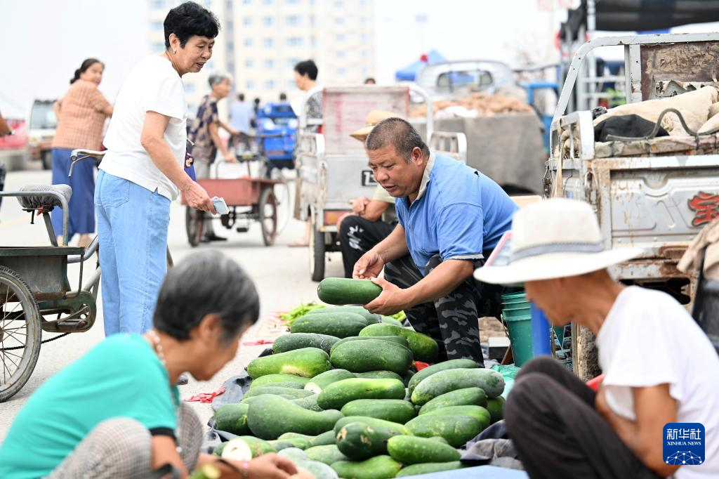 8月25日,前來趕集的村民在大集上挑選蔬菜。記者 趙子碩 攝