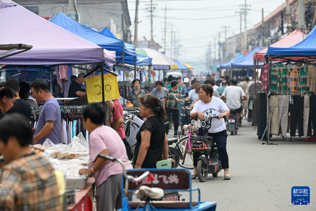 8月25日,在天津市靜海區(qū)臺頭鎮(zhèn),前來趕集的村民在大集上挑選商品。記者 孫凡越 攝