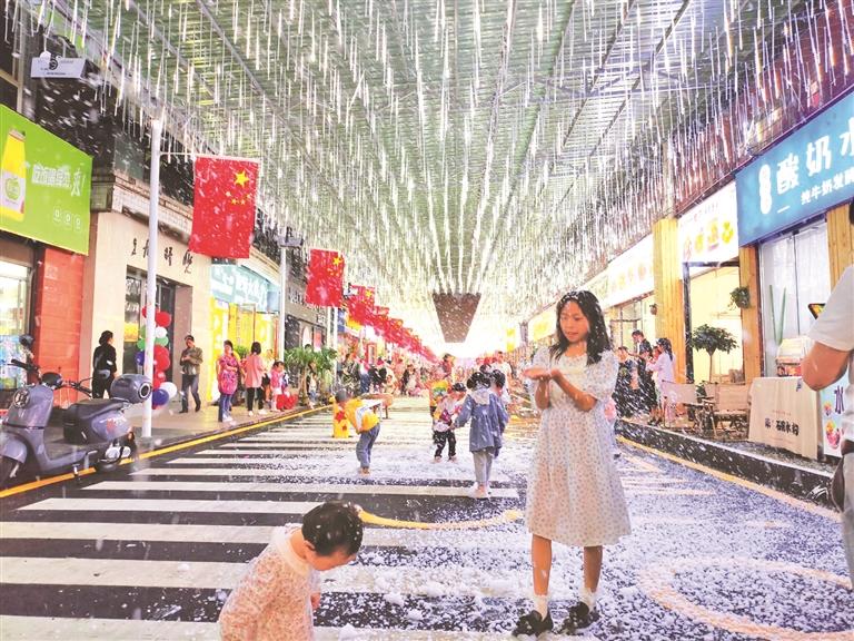 這是一個曾經(jīng)門可羅雀的小區(qū)商區(qū),建在一個低矮的斜坡上。以前,車輛亂停亂放,環(huán)境臟亂差,一排排門面成為閑置資產(chǎn)。去年夏天,為緩解城北奢香古鎮(zhèn)夜間經(jīng)濟(jì)人客爆滿的壓力,同時發(fā)展地攤經(jīng)濟(jì)增加居民就業(yè),紅旗街道利用這批閑置門面,投入150萬元打造夜間燈光秀和進(jìn)行墻體文化建設(shè),成功改造為豆干美食一條街,收到了立竿見影的效果。