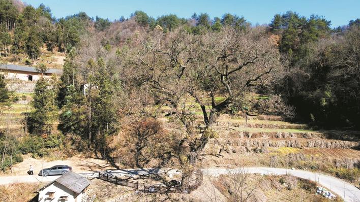 被圍起來保護(hù)的千年古樹