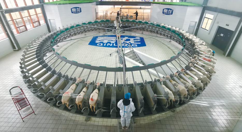 當(dāng)日9時(shí),到了給奶山羊擠奶時(shí)間,羊群通過(guò)單向趕羊通道有序進(jìn)入百位轉(zhuǎn)盤(pán)式智能擠奶設(shè)備完成每日的產(chǎn)奶任務(wù)?!拔覀兪褂玫陌傥晦D(zhuǎn)盤(pán)式智能擠奶設(shè)備,實(shí)現(xiàn)了每100只羊從清洗到完成擠奶僅需10分鐘,擠奶效率大幅提升。”于沁園說(shuō)。