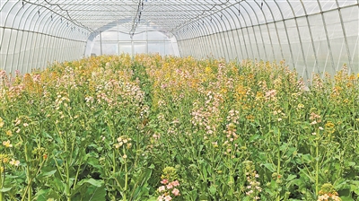 據(jù)科研團隊負(fù)責(zé)人張冬青研究員介紹,科研人員采用精準(zhǔn)聚合育種方法,把不同花色基因重新組合,促使油菜花的花色種類不斷更新豐富。目前,團隊已培育出高桿彩色油菜和矮桿彩色油菜不同花色各9種,具有花瓣大、色澤艷、香味濃郁、花量足、產(chǎn)量優(yōu)等特性,觀賞價值和經(jīng)濟價值全面升級。彩色油菜除了不同花色帶來的視覺沖擊感外,植株健壯、分枝多、產(chǎn)量和含油量接近生產(chǎn)上主栽品種。