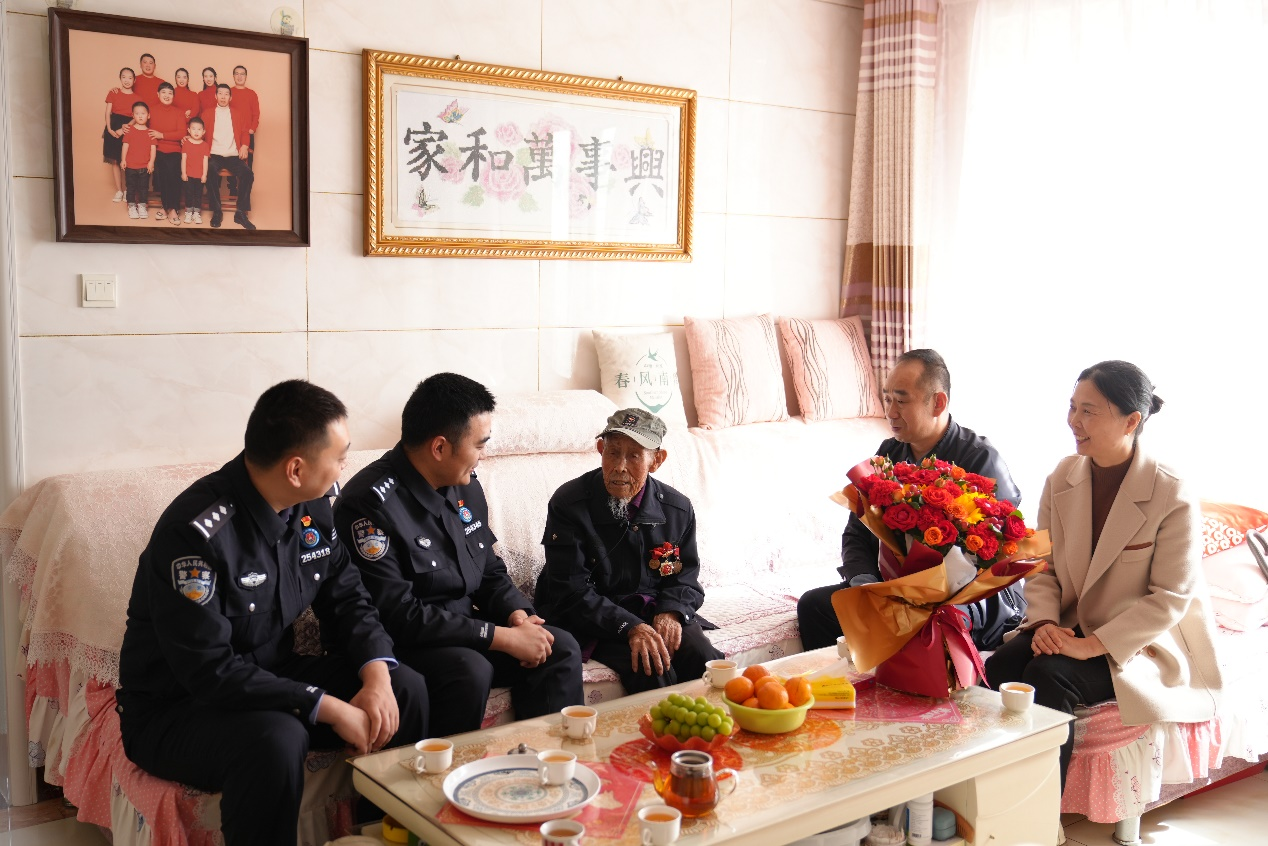 祭奠活動(dòng)結(jié)束后,民警代表來(lái)到革命前輩尹光啟家中,聽(tīng)前輩講述那段轟轟烈烈的抗戰(zhàn)故事。