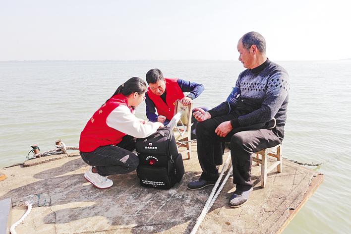 村醫(yī)上船為漁民檢查身體 通訊員 王應(yīng)平 攝