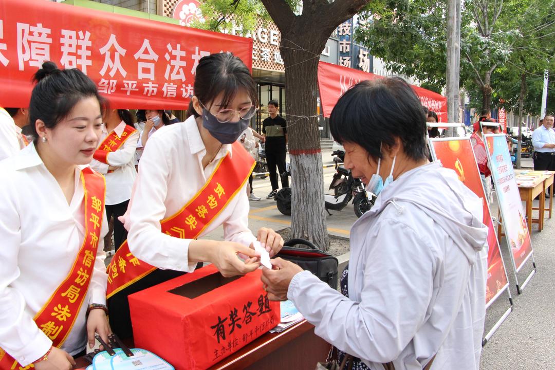 濰坊市信訪局聯(lián)合32個(gè)市直部門,威海市區(qū)兩級(jí)信訪部門聯(lián)合鎮(zhèn)街,日照市縣鄉(xiāng)三級(jí)信訪干部、基層網(wǎng)格員、社區(qū)工作者、法律志愿者,以及德州、濱州等地有關(guān)部門,也紛紛在當(dāng)?shù)氐幕顒?dòng)現(xiàn)場(chǎng)通過懸掛宣傳橫幅、擺放宣傳展臺(tái)、設(shè)置宣傳看板、發(fā)放宣傳手冊(cè)等形式,向過往群眾普及信訪工作法治化常識(shí),并就群眾關(guān)心的信訪相關(guān)問題進(jìn)行了現(xiàn)場(chǎng)答疑,讓群眾對(duì)信訪工作有更深入的了解,引導(dǎo)群眾依法理性表達(dá)訴求。