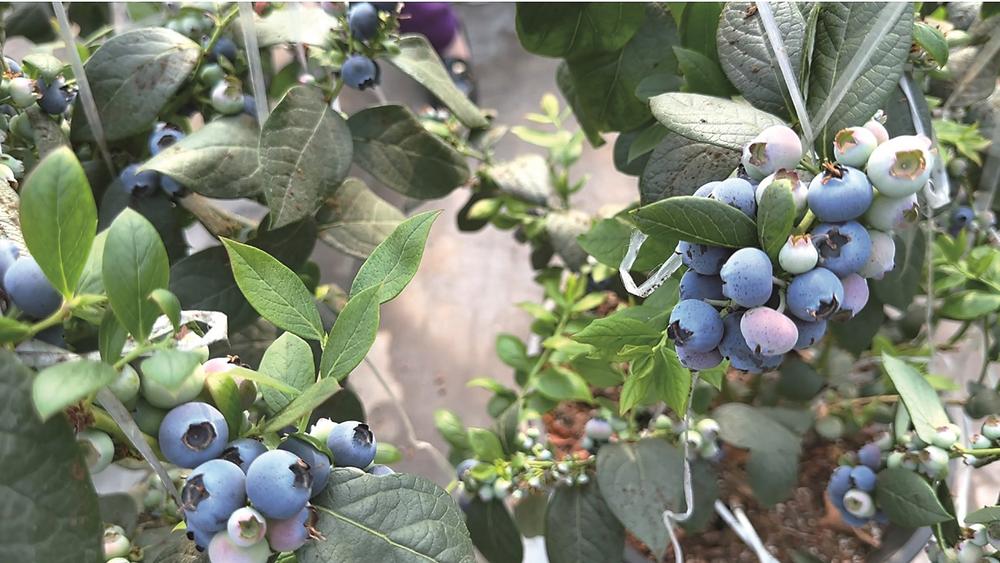 走進(jìn)藍(lán)莓大棚,記者看到成片的藍(lán)莓樹(shù)長(zhǎng)勢(shì)蔥郁,一顆顆飽滿圓潤(rùn)、色澤鮮亮的藍(lán)莓果呈藍(lán)紫色,被一層薄薄的糖霜包裹著,在陽(yáng)光和綠葉的映襯下更顯誘人可愛(ài)。