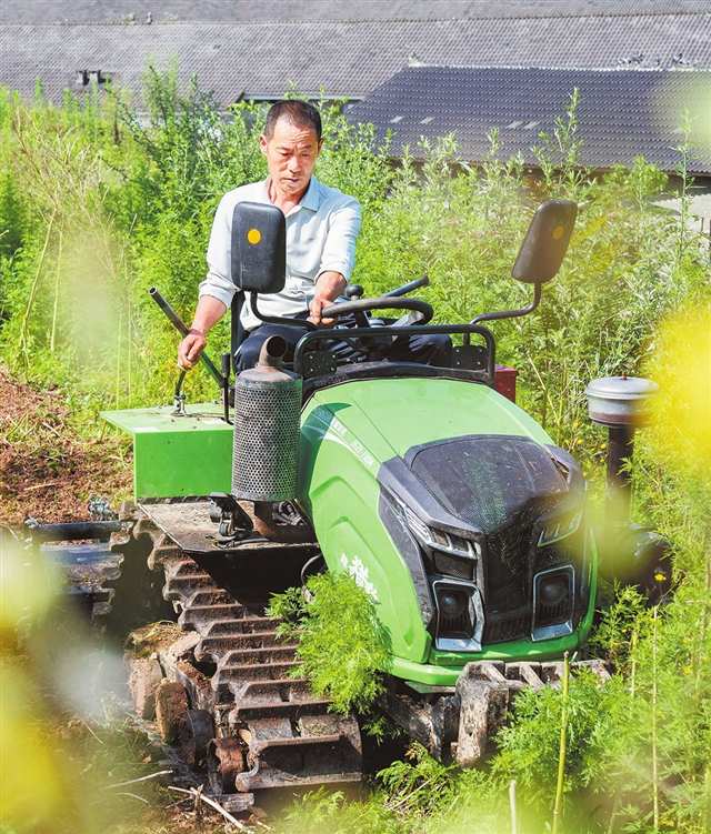 南川區(qū)河圖鎮(zhèn)中圖村村支書唐科忠操作旋耕機耕地 通訊員 陳珊 攝