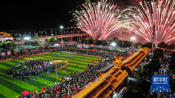 活動(dòng)中,音樂(lè)煙花秀精彩上演(2024年2月3日攝,無(wú)人機(jī)照片)記者 劉續(xù) 攝