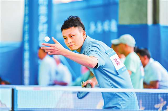開州香腸隊隊員陳斌正在雙城“村TT”參與比賽 記者 李雨恒 攝