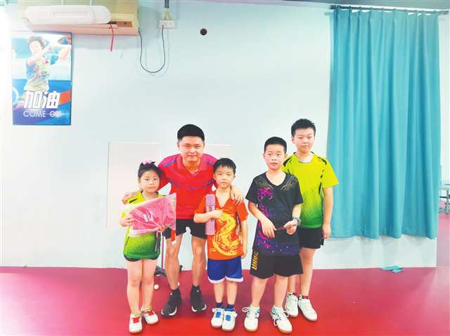 開州香腸隊隊員易秋雨(左二)帶著小隊員們進(jìn)行乒乓球訓(xùn)練(受訪者供圖)
