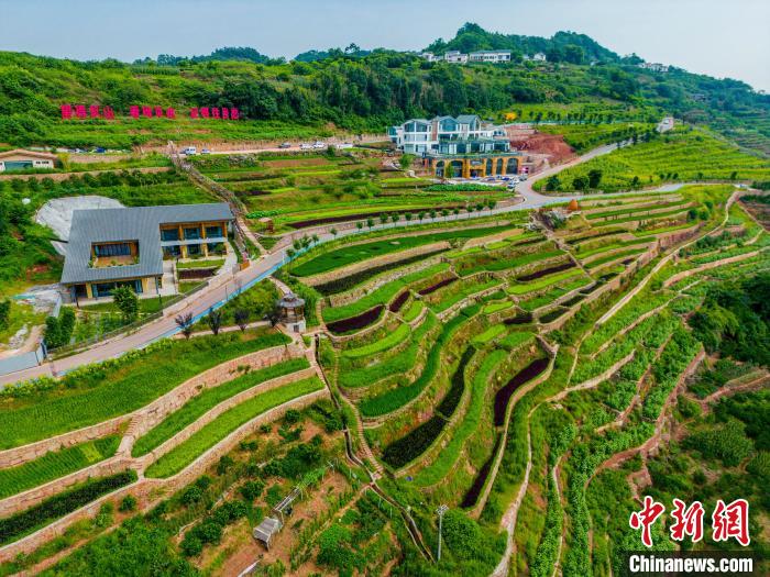 仲夏時(shí)節(jié),重慶市大渡口區(qū)石盤村青山綠水間,縱橫阡陌的梯田宛如一張巨大的調(diào)色盤,將鄉(xiāng)村生活和美麗田園連接起來……當(dāng)一張張定格金鰲田園“五彩梯田”的美麗照片刷屏社交平臺(tái),各地市民游客被這童話般的田園風(fēng)光所吸引,一波接一波前來尋覓“詩和遠(yuǎn)方”。