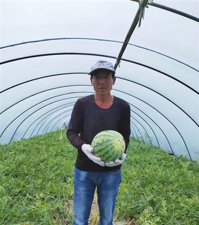 他在第二年換了兩個品種,炸瓜率降到20%,第三年的品種瓜秧子大、不吃肥,坐不住果,到了第四年,在淘汰了八九個品種后,錢連來終于找到了滿意的西瓜品種。