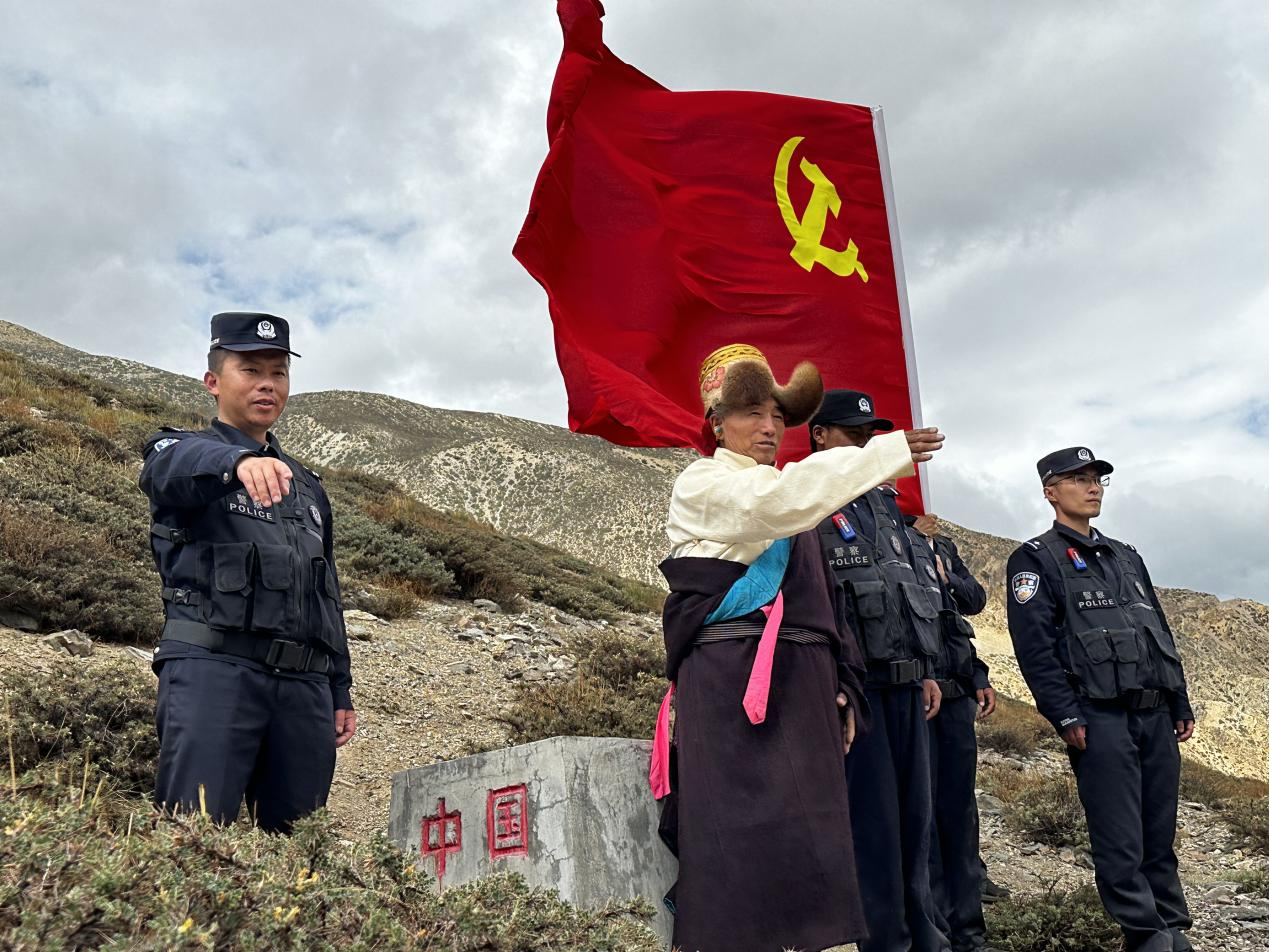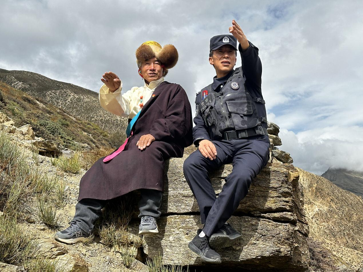 老黨員貢嘎巴桑與移民管理警察共同開展巡邊踏查活動 格熱 攝