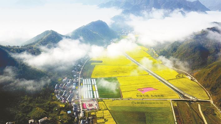 霧氣籠罩下的鄖陽(yáng)區(qū)五峰鄉(xiāng)東峰村油菜花海
