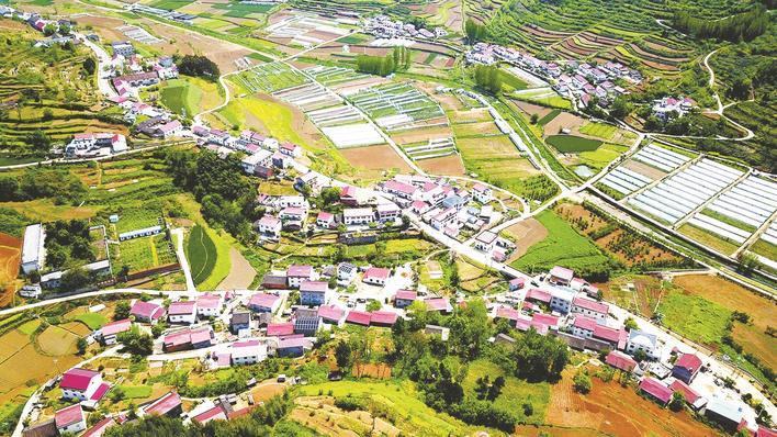 鄖陽(yáng)區(qū)譚家灣鎮(zhèn)五道嶺村的春日全景圖