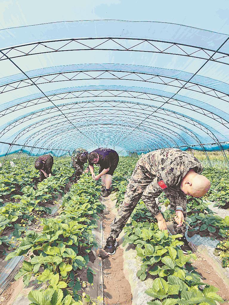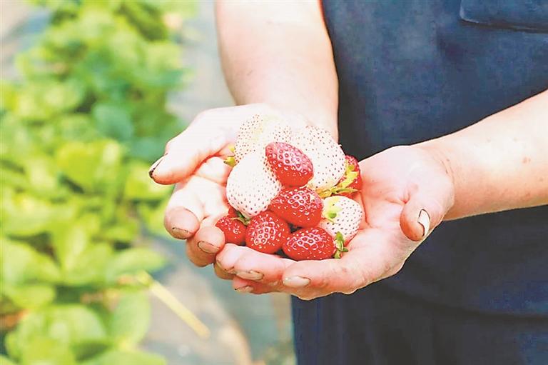 “看這白里透粉的草莓,味道就是剛剛好?!睎|山村村民王淑玲熱情地給大家介紹怎么找熟草莓,“今年的白草莓比蜂蜜都甜,我家種了兩個大棚,供不應(yīng)求,明年還得擴大規(guī)模?!?/p>