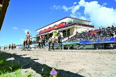 據(jù)了解,今年主辦方從青海等地邀請(qǐng)了特色高原馬種前來展示。活動(dòng)現(xiàn)場(chǎng),記者看到,騎手們身著民族服飾,英姿颯爽;駿馬裝飾五色綢帶,躍躍欲試;觀眾扶老攜幼,笑逐顏開。今年的賽馬節(jié)還新增了馬上刀術(shù)、馬上烏爾朵、騎馬射擊、騎馬拾哈達(dá)等四項(xiàng)賽馬競(jìng)技活動(dòng)。