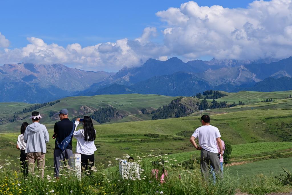 7月10日,在新疆奇臺縣江布拉克景區(qū),游客在拍攝萬畝小麥旱田景觀 記者 丁磊 攝