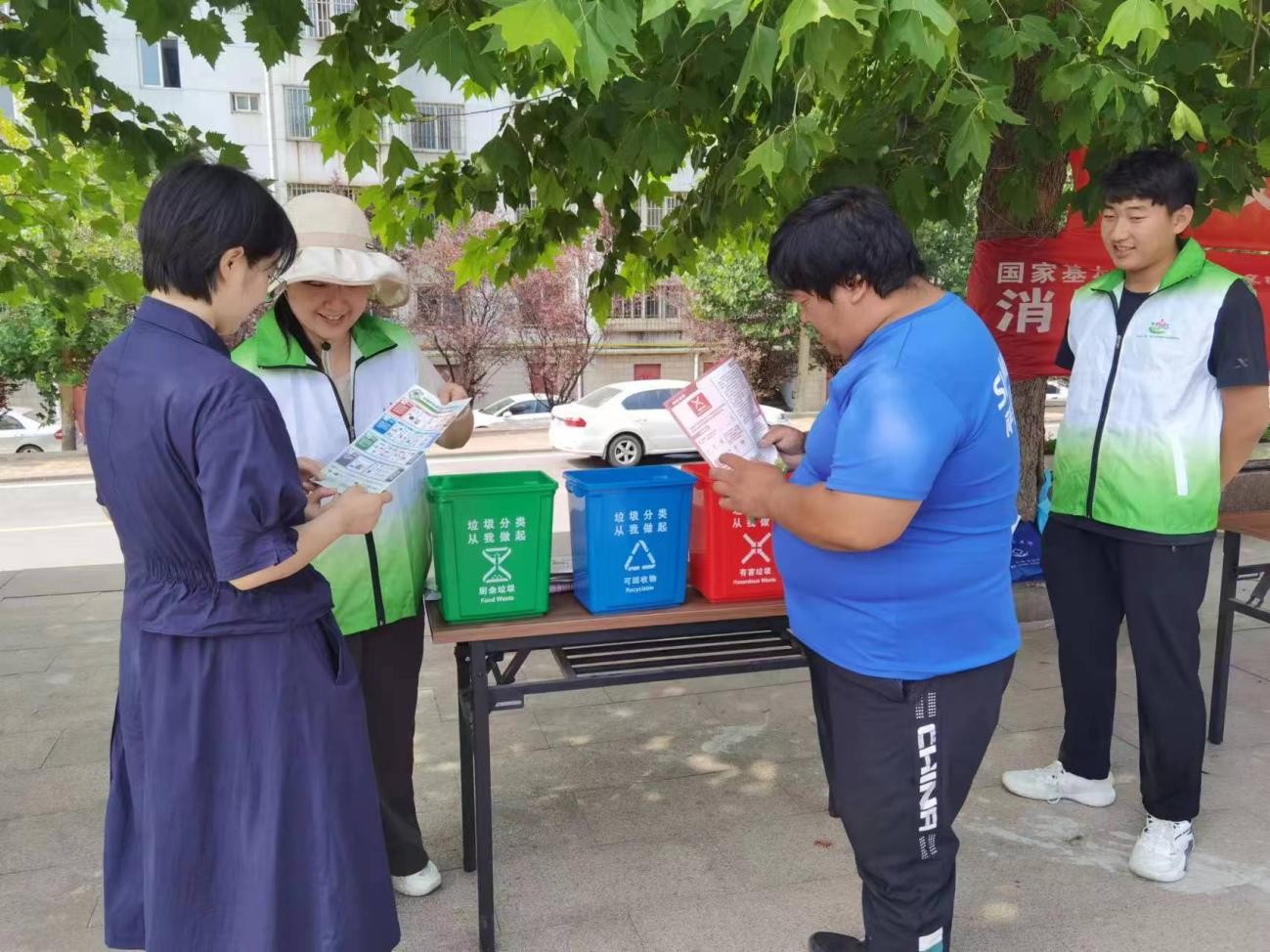 為進(jìn)一步提升轄區(qū)居民的環(huán)保意識,形成人人參與垃圾分類的良好氛圍。8月13日,山東省濟(jì)南市鋼城區(qū)里辛街道城管辦聯(lián)合石家?guī)X社區(qū)在社區(qū)廣場開展了“泉”心全力垃圾分類志愿者活動(dòng)。