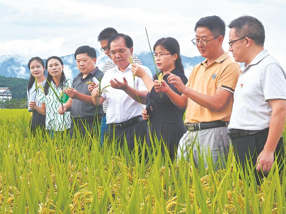 當(dāng)天,參會人員還前往沙縣夏茂國家級優(yōu)質(zhì)稻品種展示評價基地,對展示的28個優(yōu)質(zhì)稻品種的田間表現(xiàn)情況進行現(xiàn)場考察和評價,評選出了“野香優(yōu)676”“紫兩優(yōu)737”“山兩優(yōu)164”等10個綜合性狀表現(xiàn)優(yōu)異的優(yōu)質(zhì)稻品種。