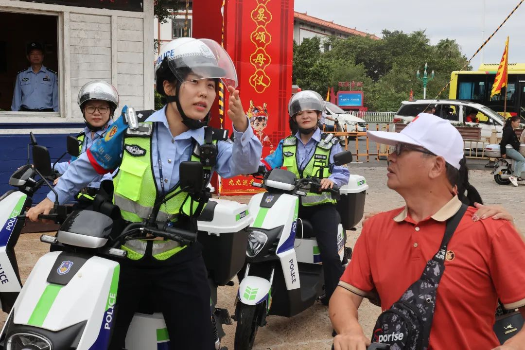 在國(guó)慶期間,女子巡邏隊(duì)員升級(jí)裝備,駕駛警用電動(dòng)車,以更加飽滿的姿態(tài)全新亮相。10月5日,騎行隊(duì)員在祖廟山門廣場(chǎng)前巡邏時(shí)遇到一對(duì)腿腳不便的游客,向隊(duì)員求助“前往祖廟山上,是否有無(wú)障礙通道?”面對(duì)特殊請(qǐng)求,騎行隊(duì)員在詢問(wèn)了游客的具體需求和身體狀況后,決定使用巡邏電動(dòng)車將他們送往祖廟圣旨門廣場(chǎng),并充當(dāng)起臨時(shí)導(dǎo)游,為游客介紹了祖廟的歷史和文化。巡邏結(jié)束后,服務(wù)還在繼續(xù),隊(duì)員還主動(dòng)提出將這對(duì)游客送往其他景點(diǎn)游玩,讓他們能夠更全面地了解湄洲的文化和風(fēng)土人情。