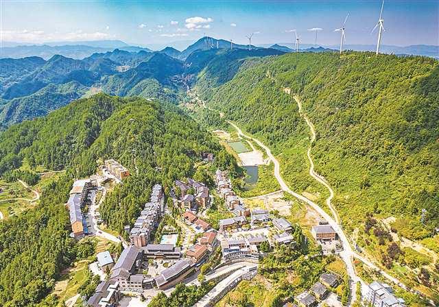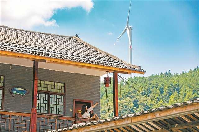 8月30日,豐都縣橫梁鎮(zhèn)江池村,高聳的白色風(fēng)車為村里新添了一道風(fēng)景線 記者 尹詩(shī)語 攝