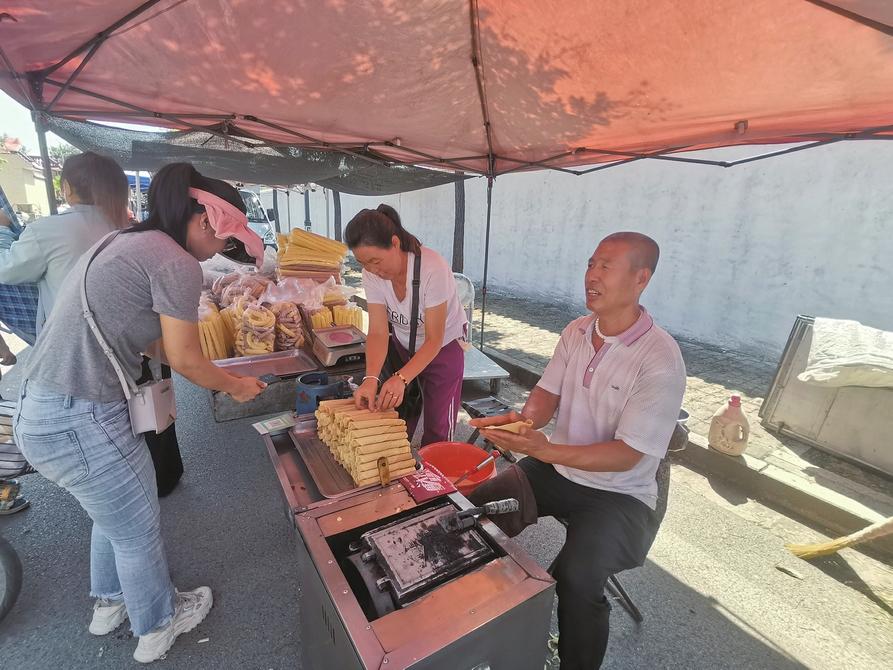 這一天,也就是農(nóng)歷七月廿六,是梁周村一年一度的趕集日,附近十里八鄉(xiāng)的人們早早就備齊了要售賣的貨品,凌晨四五時出發(fā)到集市上已經(jīng)提前占好的區(qū)域支攤、擺貨,等待著消費(fèi)者們前來購買。