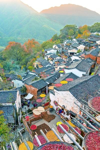 江西婺源縣篁嶺村曬秋場景 黃宇堯 攝