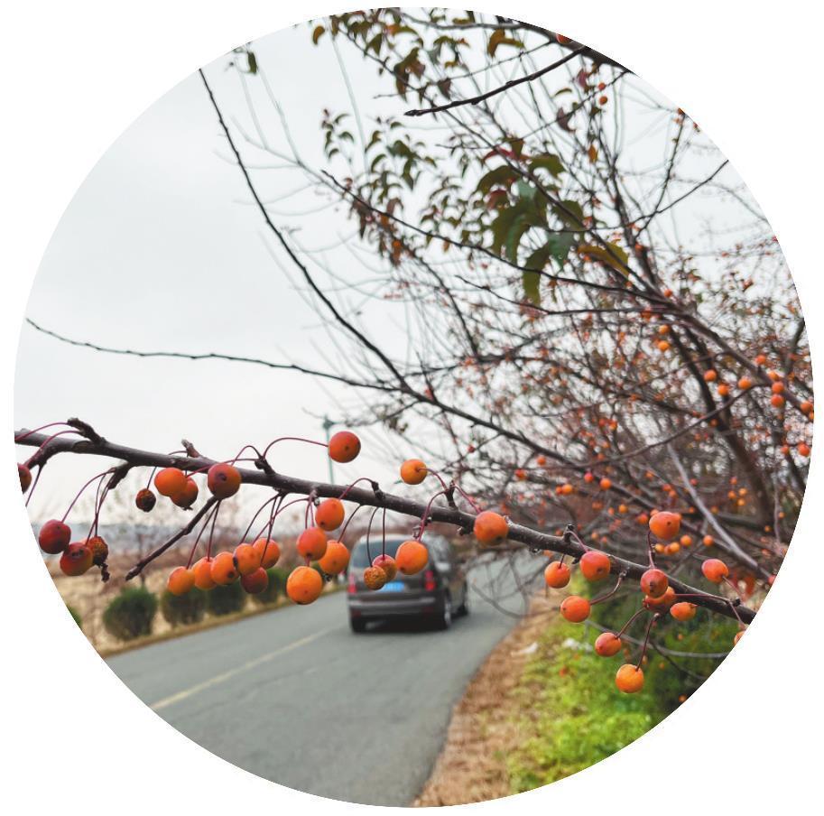 路邊的行道樹(shù)上,掛滿了紅色的果實(shí)