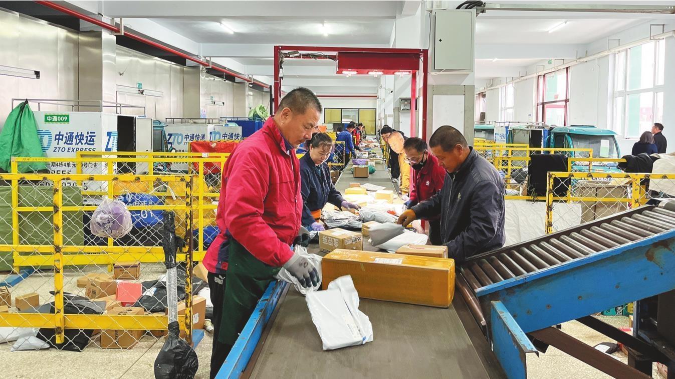快遞公司把分揀車間直接建在了鹿鄉(xiāng)綠港電商基地的一樓