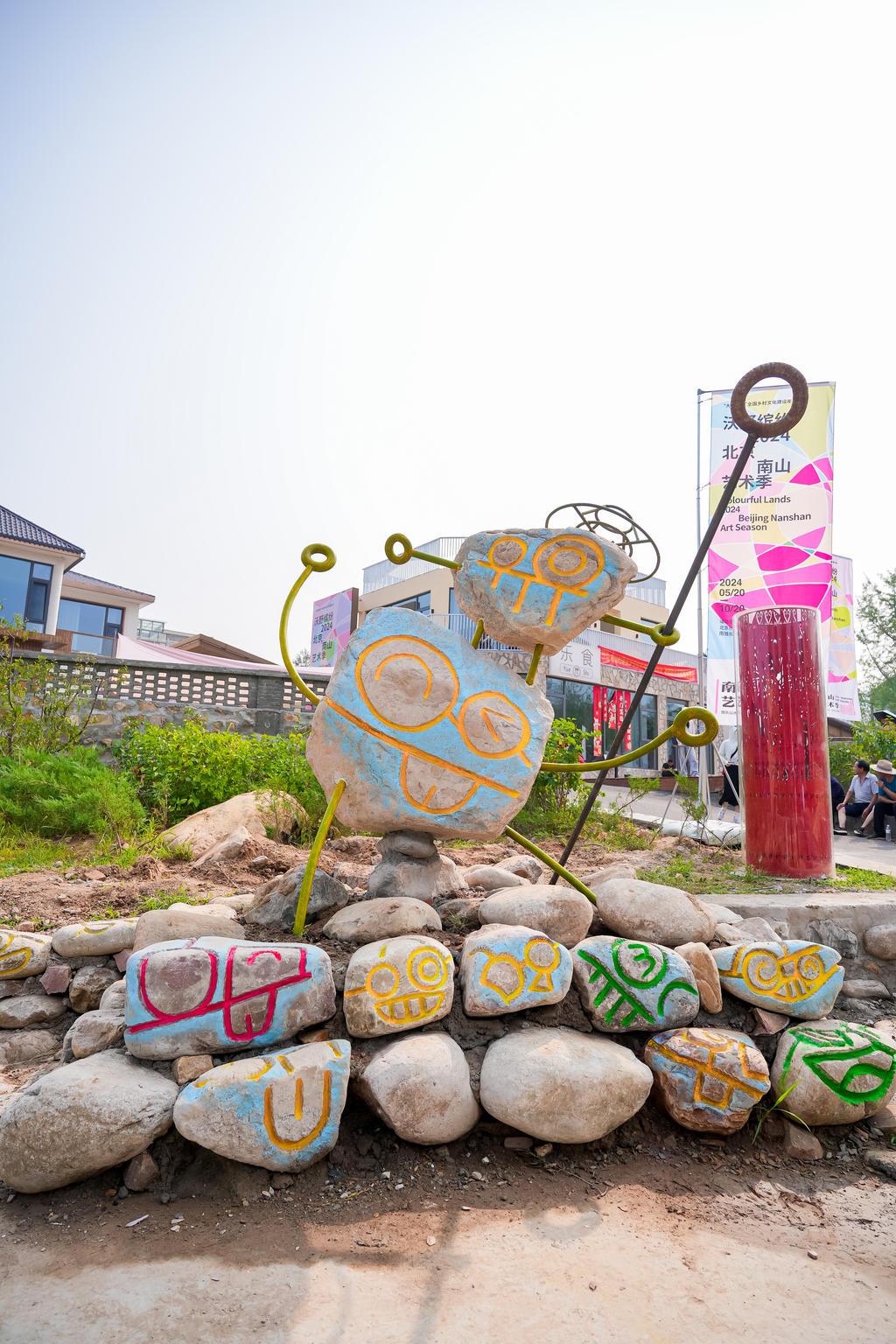 如今,南山村村口灰撲撲的石頭圍墻變成了一面豐收墻,大家把石頭涂畫成白菜、柿子、大桃等果蔬的樣子;清華美院在胡同安裝了交互感應(yīng)裝置,夜晚有人走過,就會投射出一只奔跑的夜光兔子;北京林業(yè)大學用玻璃飲料瓶復現(xiàn)了村里曾經(jīng)出土的文物石馬,名為《馬放南山》……環(huán)境變好了,加上南山藝術(shù)季的帶動效應(yīng),村民的柿子、山里紅、核桃也都賣出去了,鄉(xiāng)村建設(shè)還讓村里的石匠、瓦工有了在家門口掙錢的機會。