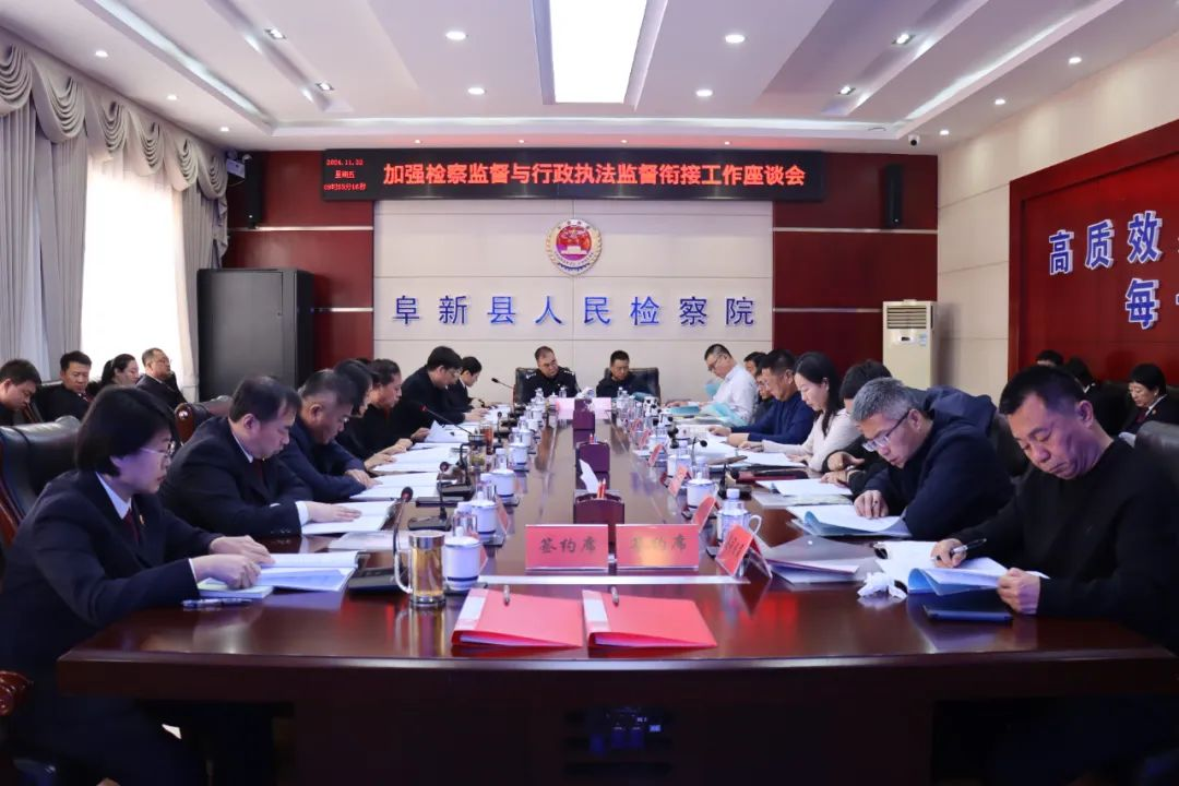 為全面落實(shí)《中共中央關(guān)于加強(qiáng)新時(shí)代檢察機(jī)關(guān)法律監(jiān)督工作的實(shí)施意見》和最高檢《關(guān)于推進(jìn)行刑雙向銜接和行政違法行為監(jiān)督構(gòu)建檢察監(jiān)督與行政執(zhí)法銜接制度的意見》,有效推動(dòng)檢察監(jiān)督與行政執(zhí)法監(jiān)督的銜接配合,助推法治政府建設(shè),11月22日,遼寧省阜新縣人民檢察院與阜新縣司法局聯(lián)合召開了加強(qiáng)檢察監(jiān)督與行政執(zhí)法監(jiān)督銜接工作座談會(huì)??h委常委、副縣長張文遠(yuǎn),縣委常委、政法委書記王立靖參加會(huì)議并講話??h公安局、縣司法局、縣工業(yè)和信息化局、縣人力資源和社會(huì)保障局、縣住房和城鄉(xiāng)建設(shè)局、縣水利局、縣應(yīng)急管理局、縣林業(yè)和草原局等12家行政單位參加了座談會(huì)。市人民檢察院、縣紀(jì)委監(jiān)委、縣人民法院派員參加了會(huì)議。